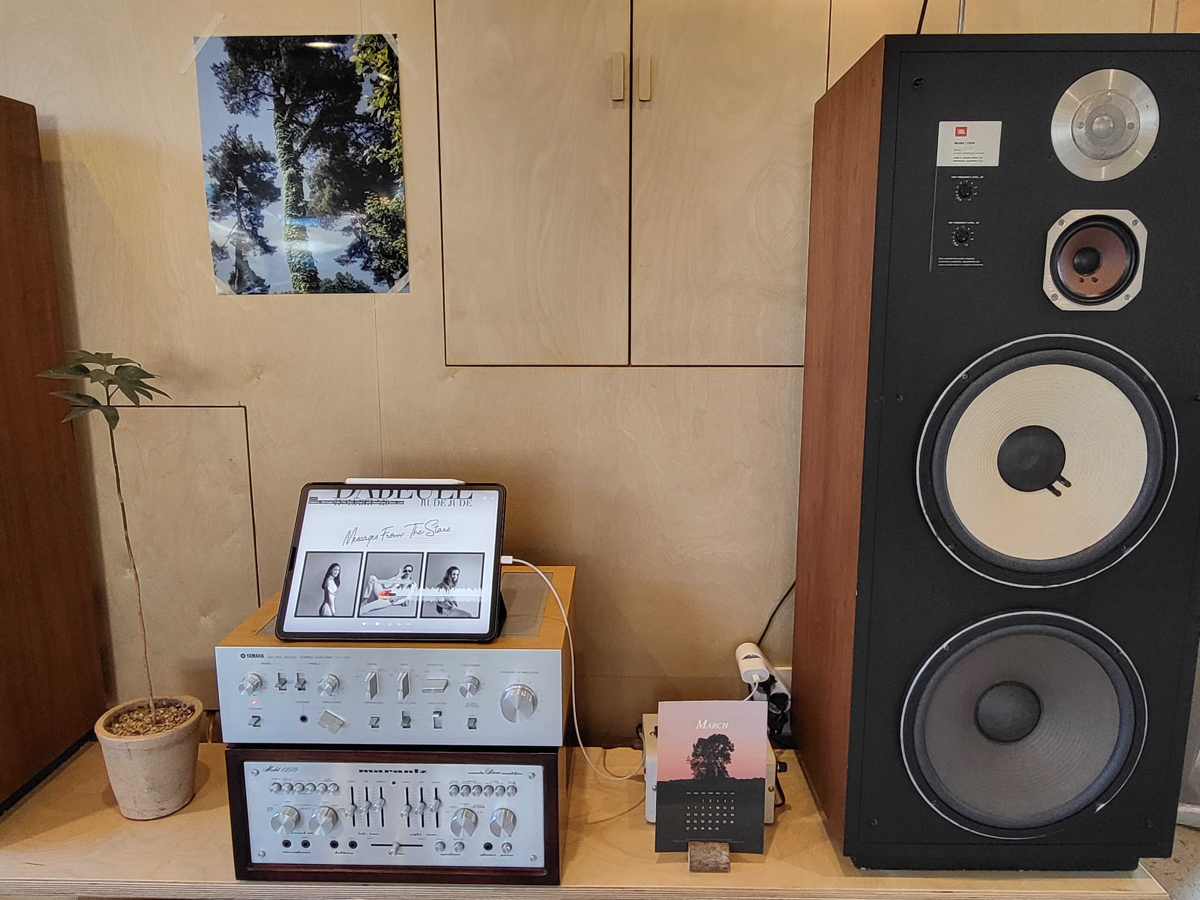 가장 먼저 레트로한 감성의 음향기기가 눈에 들어옵니다.